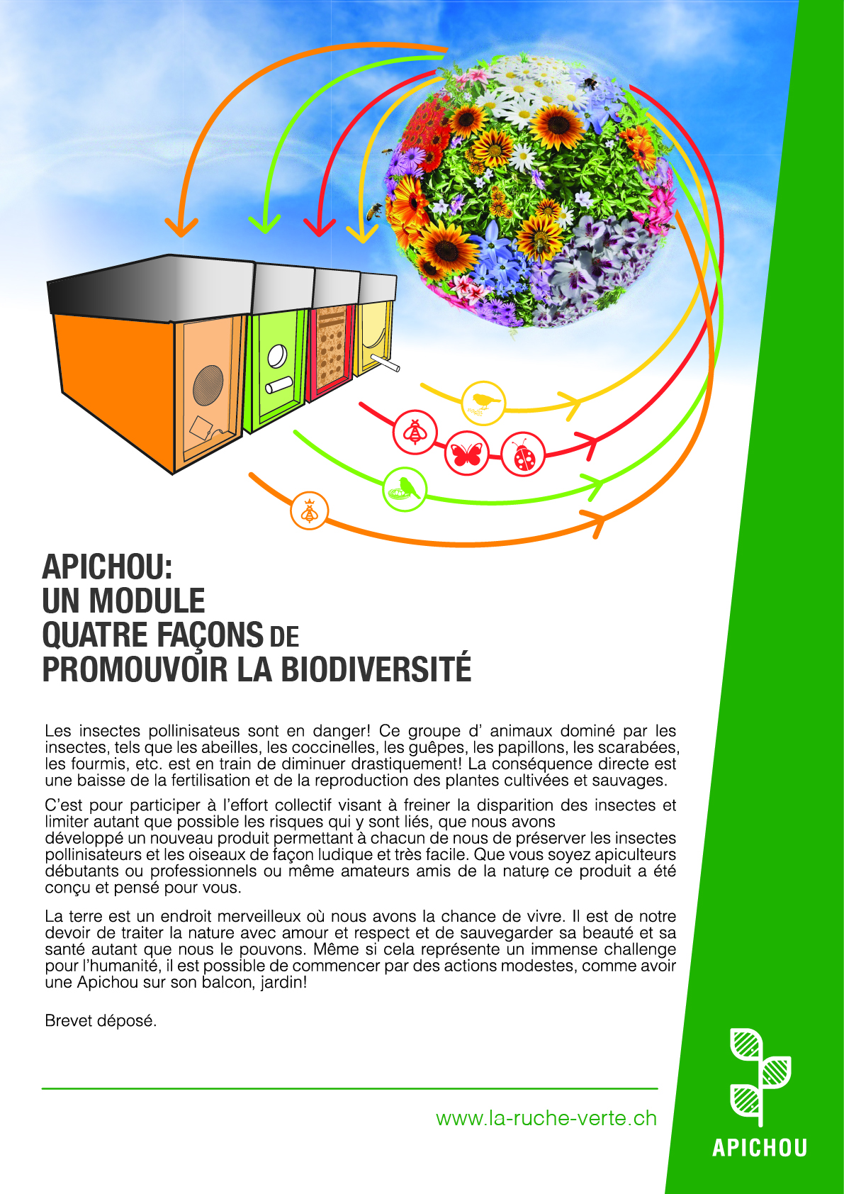 La terre est un endroit merveilleux où nous avons la chance de vivre. Il est de notre devoir de traiter la nature avec amour, respect et de sauvegarder sa beauté et sa santé autant que nous le pouvons. Même si cela représente un immense challenge pour l’humanité, il est possible de commencer par des actions modestes, comme avoir une Apichou sur son balcon, jardin, façade.