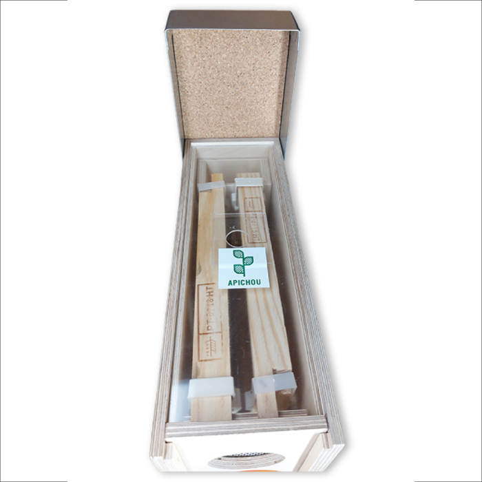 La ruchette de fécondation Apichou par sa taille et sa composition offre les conditions idéales pour l’élevage des reines d’abeille mellifères. En effet, cette ruchette offre un bon contrôle de l’état de la ponte et plus de confort à la reine à qui on peux prolonger son séjour, son volume permet d’obtenir rapidement des conditions optimales constantes de la température et de l’humidité, ce qui joue un rôle déterminant pour le développement de la spermathèque et sur la précocité d’entrée en ponte des reines fécondées. L’importance de l’âge de la reine fécondée lors de sa réintroduction en ruche au-delà de 20 jours à un taux bien supérieur.